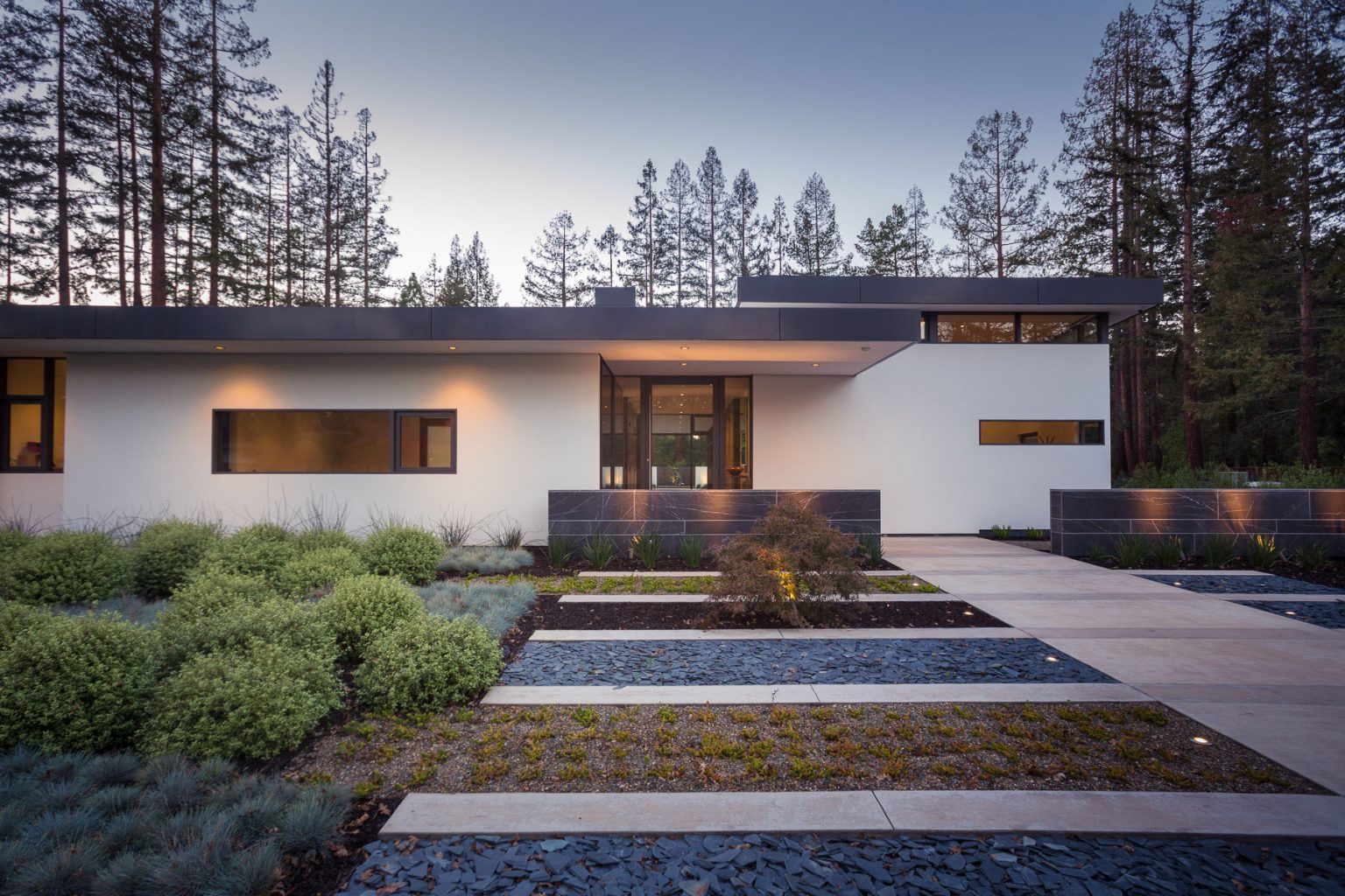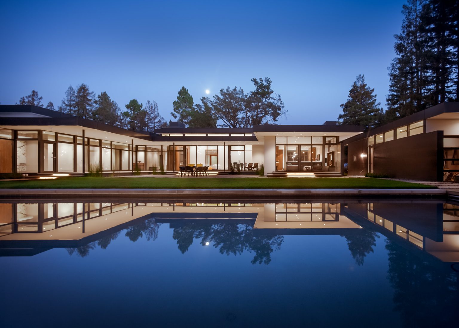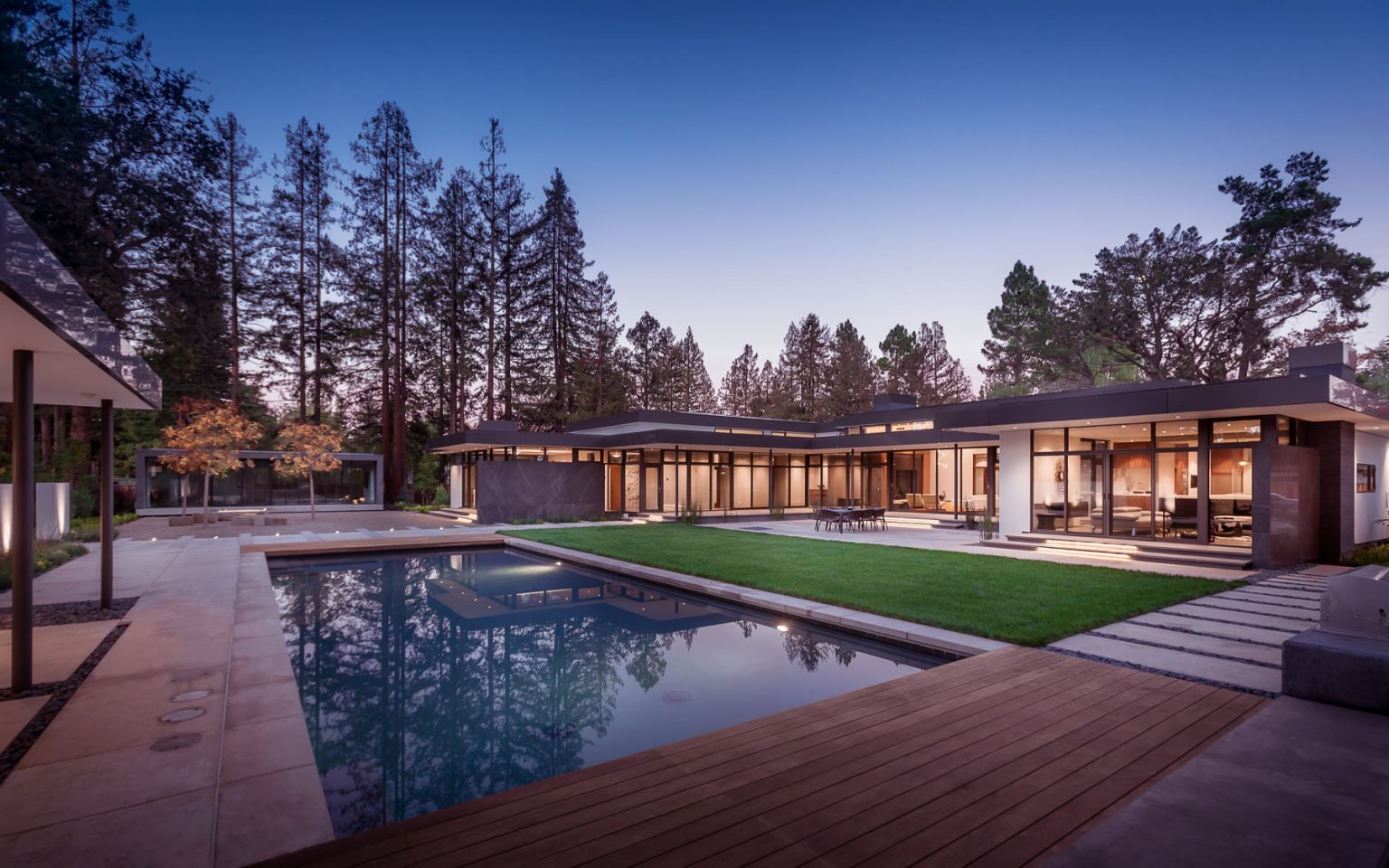 Atherton has many large substantial homes – our clients purchased an existing home on a one acre flag-shaped lot and asked us to design a new dream home for them. The result is a new 7,000 square foot four-building complex consisting of the main house, six-car garage with two car lifts, pool house with a full one bedroom residence inside, and a separate home office /work out gym studio building. A fifty-foot swimming pool was also created with fully landscaped yards.